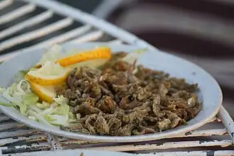 Ya que Zimbabue es un país sin acceso al mar, el pescado y el marisco no son comunes.[1] Sin embargo, cerca de lagos y ríos (como el lago Kariba) se puede encontrar sardina tanganica (Limnothrissa miodon), conocida localmente como kapenta. Se trata de un pescado de pequeño tamaño, común en el oriente africano. La temporada de la kapenta coincide con la época de lluvias, se puede congelar o salar y secar al sol.[2] La kapenta no se encuentra en los mercados zimbabwenses, solo en lugares aledaños al lago. Se come frita y/o acompañada de sadza.