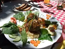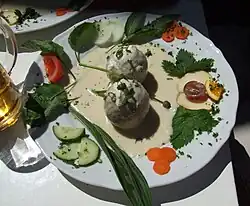 - Läwwerknepp (Knödel elaborado con hígado) o Flääschknepp (Knödel elaborado con carne), se puede bien servir con Sauerkraut.