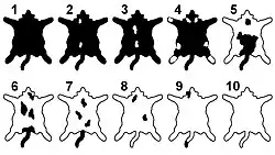 La bicoloración en los gatos se clasifica en una escala del uno al diez, donde el uno significa que es completamente de color y el diez que es completamente blanco. También existen varios patrones con nombres propios.[2]