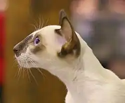 - Manto: Muy corto, fino, brillante y sedoso, pegado al cuerpo y casi sin subpelo. La máscara de la cara, puntos en las orejas, patas y cola deben corresponder a puntos de color lo más parejos posible. La máscara no se extenderá por sobre toda la cabeza sino que se conectará con las orejas por medio de trazas de color. El color del cuerpo debe ser parejo. Se permiten sombras claras en los flancos, pero debe haber un claro contraste entre los puntos y el color del cuerpo.