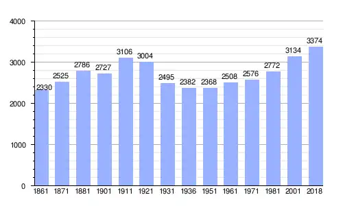 | Gráfica de evolución demográfica de Gattico entre 1861 y 2018 |