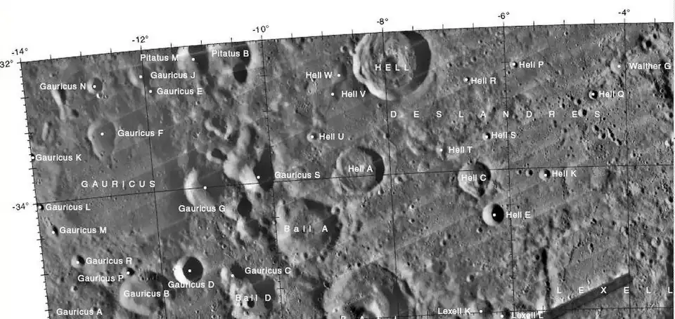 Por convención estos elementos son identificados en los mapas lunares poniendo la letra en el lado del punto medio del cráter que está más cerca de Gauricus.