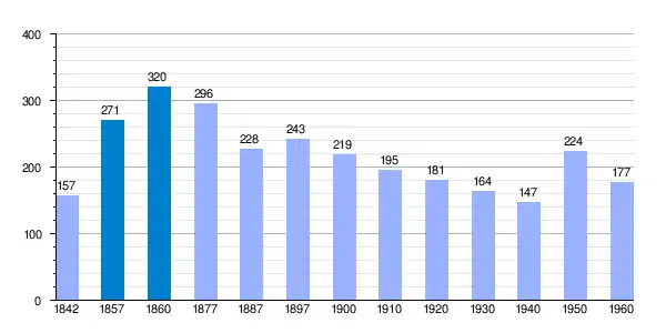 | Gráfica de evolución demográfica de Gausach[3] entre 1842 y 1960 |