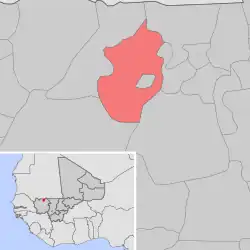 Se encuentra ubicada al oeste del país y al noreste de la región de Kayes, en la zona climática del Sahel, cerca de la frontera con Mauritania y la región de Kulikoró.