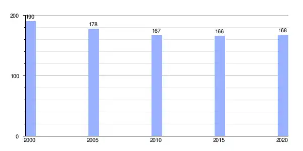 | Gráfica de evolución demográfica de Gayoso entre 2000 y 2020 |