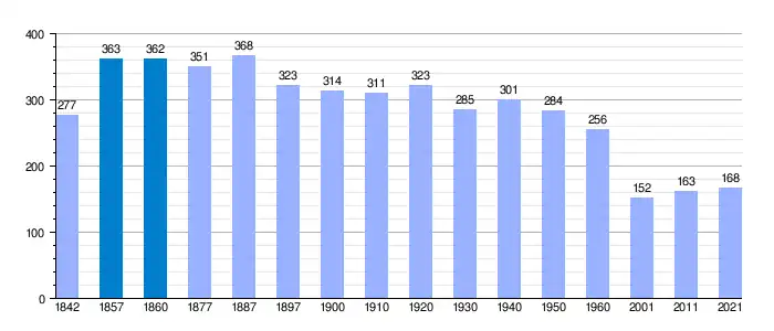 | Gráfica de evolución demográfica de Gaztelu[5][6] entre 1842 y 2021 |