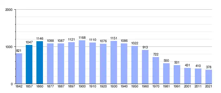 En 2019 registró su censo más bajo con 360 habitantes (INE 2019). Actualmente cuenta con una población de 467 habitantes (INE 2024).