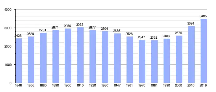 Todos los datos históricos relativos al actual municipio, el siguiente gráfico refleja su evolución demográfica, incluyendo municipios después de efectuada la fusión el 1 de enero de 1977.