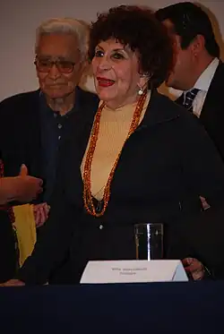Cabrera en una presentación de libro del Salón de la Plástica Mexicana en el Palacio de Bellas Artes | ||