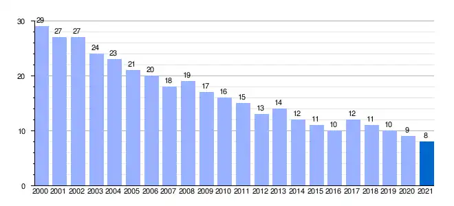 | Gráfica de evolución demográfica de Gema (Salamanca)[3] entre 2000 y 2021 |