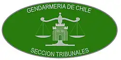 Gendarmería de Chile, institución dependiente del Ministerio de Justicia, tiene a su cargo las cárceles, penales y la seguridad de los Tribunales de Justicia del país. Posee por misión, "Contribuir a una sociedad más segura, garantizando el cumplimiento eficaz de la detención preventiva y de las penas privativas o restrictivas de libertad a quienes los tribunales determinen, proporcionando a los afectados un trato digno, acorde a su calidad de persona y desarrollando programas de reinserción social que tiendan a disminuir las probabilidades de reincidencia delictual." [22]