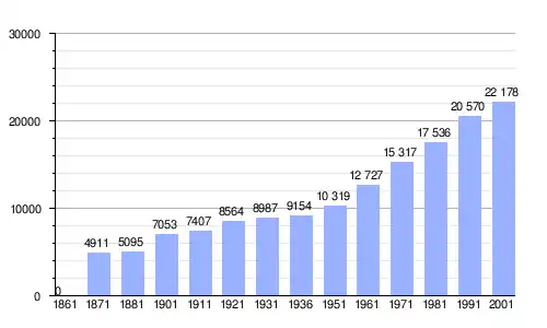 | Gráfica de evolución demográfica de Genzano di Roma entre 1861 y 2001 |