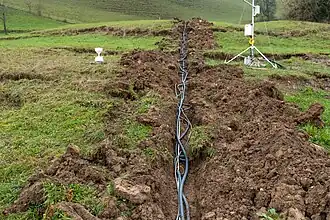 La geofísica de superficie cercana es el uso de métodos geofísicos para investigar características a pequeña escala en el subsuelo superficial (decenas de metros).[1] Está estrechamente relacionado con la geofísica aplicada o la geofísica de exploración. Los métodos utilizados incluyen refracción sísmica y métodos de reflexión, gravedad, magnéticos, eléctricos y electromagnéticos. Muchos de estos métodos se desarrollaron para la exploración de petróleo y minerales, pero ahora se utilizan para una gran variedad de aplicaciones, que incluyen arqueología, ciencias ambientales, ciencias forenses,[2] inteligencia militar, investigación geotécnica, búsqueda de tesoros e hidrogeología. Además de las aplicaciones prácticas, la geofísica cercana a la superficie incluye el estudio de los ciclos biogeoquímicos.[3][4]