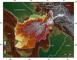 Afganistán, atravesado por el Hindu Kush y por el Pamir en el extremo nordeste, cerca de la frontera con China, posee estrechos valles y elevados picos que superan los 7000 m. En los altos valles hay ciudades como Bamiyán, a 2500 m, en el centro-este, en la Ruta de la Seda, con un clima frío, medias en enero de -10 y 1.oC, y en verano de 10 y 26.oC, con una escasa precipitación invernal y primaveral de 117 mm.[2]