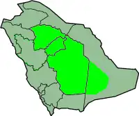 En la meseta interior, el Najd, entre 400 y 1200 m, con una serie de desiertos de arena separados por áreas pedregosas, la temperatura es bastante uniforme. En Ha'il, en el norte, a 1000 m de altura, oscila entre 4 y 17 °C en enero, y 24 y 40 °C en agosto. En Riad, en el centro, a 600 m, con 111 mm en 46 días, sobre todo entre marzo y abril, oscilan entre 9 y 20 °C en enero, y 29 y 44 °C en verano. En Medina, al oeste de la meseta (27,5 °C de media anual), las temperaturas oscilan entre 12 y 24 °C en invierno, y 30 y 44 °C en verano. En esta ciudad solo caen 41 mm de media anual.[6]