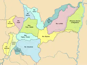 - Cuenca del Río La Miel:Su área es 116.410(Ha), la más grande del departamento con afluentes como los ríos Manso, Pensilvania, Tenerife y Moro.
