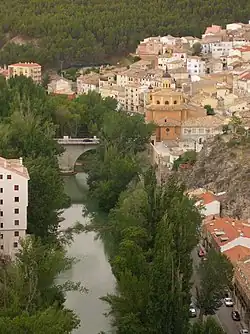 La cuenca del río Segura abastece a un total de 34 municipios albaceteños, situados al sureste de la provincia, y se extiende por un total de 4713 km².[6] El río Segura nace en la sierra de su mismo nombre, en la provincia de Jaén, por la que discurre con dirección noreste. Su principal afluente es el río Mundo.