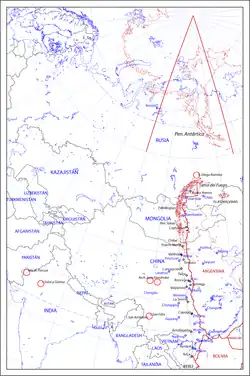 - 5308 km[4] con Argentina —la tercera frontera terrestre más larga del mundo, luego de la frontera entre Estados Unidos y Canadá (8893 km) y la de Rusia con Kazajistán (6846 km)—.[4]