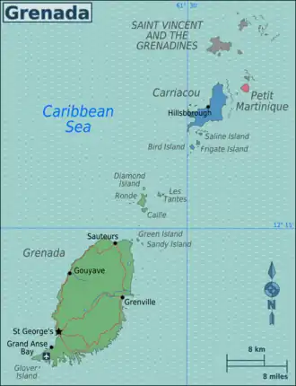 Granada es una isla caribeña de 306 km² que junto con las Granadinas meridionales forman el estado de Granada.