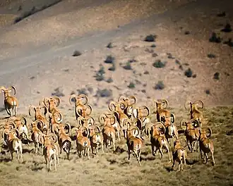 El leopardo de Persia se dice que es la más grande de todas las subespecies de leopardos del mundo. La gama principal de esta especie en Irán se solapa de cerca con la de cabra bezoar. Por lo tanto, se encuentra en todas partes de Elburz y sierras montañosas de los Zagros, así como en sierras menores dentro de la Meseta iraní. La población del leopardo es muy escasa, debido a la pérdida de hábitat, de sus presas naturales, y a la fragmentación de la población. Aparte de la cabra bezoar, los muflones, el jabalí, los cérvidos (sea el ciervo de Maral o los corzos), y los animales domésticos constituyen la dieta de leopardo en Irán.
