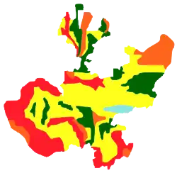 Estas subdivisiones de la provincia poseen patrones característicos de topografía y morfología; presencia y distribución de suelos y vegetación diferentes, por lo que la descripción de suelos, vegetación, posibilidades de uso agrícola, ganadero y forestal, y el estado actual de las formas de producción agrícola, se encuentra referida por regiones