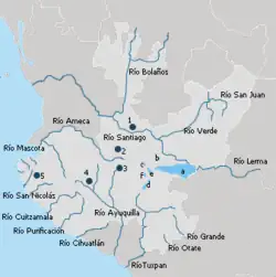 Sus principales ríos son el río Lerma, el río de San Juan de los Lagos, el río San Miguel, el río Bolaños, el río Atengo, el río Ameca el río Cuitzmala y el Río Santiago.