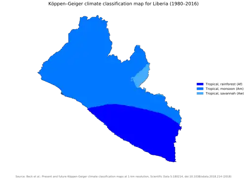 - ↑ «Climate - Liberia». Climates to travel (en inglés). Consultado el 2 de abril de 2020.
