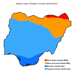- ↑ «Geography, Climate and Vegetation». Embassy of the Federal Republic of Nigeria, Beirut, Liebanon (en inglés). Consultado el 14 de febrero de 2019.