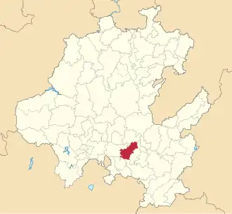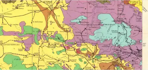 Geológicamente pertenece a la subprovincia del Eje Neovolcánico,[13] los rasgos geológicos del municipio son:[3]