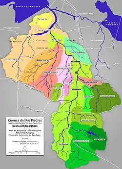 - Río Piedras (16 km; geografía de Río Piedras), también conocido como el río Puerto Nuevo, río Piedras es el nombre correcto según la Agencia de Protección Ambiental de los Estados Unidos y por el Servicio de Conservación de Recursos Naturales del Departamento de Agricultura de los Estados Unidos.[15]