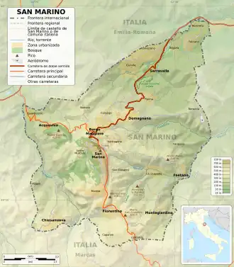 - ↑ «Geografía de San Marino». Consultado el 25 de noviembre de 2020.