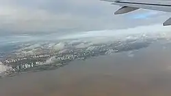 Imagen satelital del Río de la Plata. Nótese el Gran Buenos Aires en el lado derecho -casi al inicio del estuario del Río de la Plata- y luego Montevideo, en la República Oriental del Uruguay en el lado izquierdo - Montevideo se ve próxima a la desembocadura del estuario del Río de la Plata, allí donde las aguas dejan de ser amarronadas y se vuelven azules-.