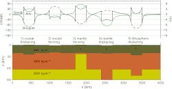 Las variaciones en la altura de la superficie geoidal están relacionadas con distribuciones de densidad anómalas dentro de la Tierra. Las medidas del geoide ayudan así a comprender la estructura interna del planeta. Cálculos sintéticos muestran que la firma geoidal de una corteza engrosada (por ejemplo, en cinturones orogénicos producidos por colisión continental) es positiva, al contrario de lo que cabría esperar si el engrosamiento afecta a toda la litosfera. La convección del manto también cambia la forma del geoide con el tiempo.[7]