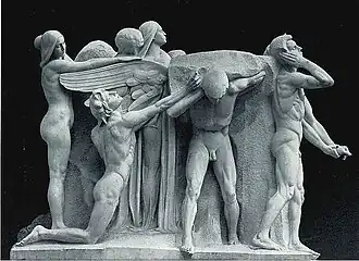- Grupo sur: La carga de la vida: la ley quebrantada (mármol, 1911), Capitolio del Estado de Pensilvania, Harrisburg.[25]