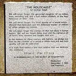 - Memorial del holocausto en el Palacio de la Legión de Honor de California (Holocaust Memorial at California Palace of the Legion of Honor) (1984) en San Francisco