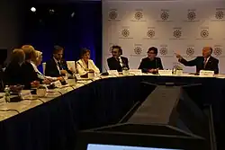 - ↑ Byron York, National Review Archivado el 26 de octubre de 2010 en Wayback Machine., August 3, 2005: "Soros, who would eventually give ACT $20 million of his own money ..."