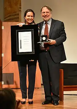![]() Gerardo Tamez recibiendo la Medalla Bellas Artes, 2018. | ||