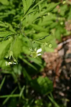 Es una planta herbácea con el tallo erecto y pubescente que alcanza los 75 cm de altura. Las hojas son alternas, pecioladas, serradas y pubescentes por el envés, con largos peciolos en las hojas basales que se reducen hasta 1 cm en las superiores. Las hojas más bajas caulinas son trifoliadas y las superiores simplemente lobuladas. Las flores son solitarias en cimas terminales o axilares con pedicelos de 5 cm de longitud, estas tienen 1.5 cm de ancho con cinco pétalos blancos. El fruto es un aquenio globoso.