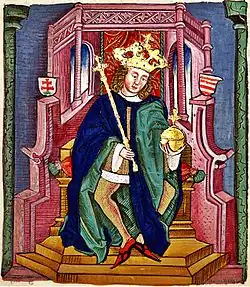 ![]() Retratado en una miniatura de la Crónica iluminada (c. s. XV). | ||