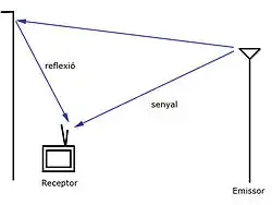 Este efecto introduce una réplica de la imagen transmitida, desplazada en posición, que se superpone (suma) a la imagen que se está recibiendo. Este efecto es principalmente debido a reflexiones de la señal transmitida. La imagen desplazada que se suma en mayor o menor intensidad a la que se transmite se puede asociar a esta reflexión del señal. Una imagen puede dejar una estela ocasionada por más de una reflexión. La intensidad de las imágenes superpuestas y su desplazamiento, normalmente horizontal, dependen de las características de la causa de estas reflexiones del señal.
