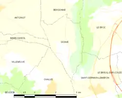 - ↑ INSEE, Datos de población para el año 2012 de Gignat (en francés).