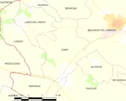 Gimat es una población y comuna francesa, en la región de Mediodía-Pirineos, departamento de Tarn y Garona, en el distrito de Castelsarrasin y cantón de Beaumont-de-Lomagne.
