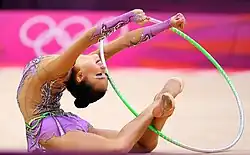 Son Yeon-jae realizando un ejercicio de aro en Londres 2012.