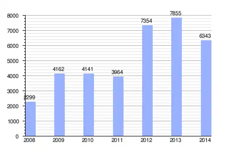 Gráfica de evolución de la deuda viva del ayuntamiento entre 2008 y 2014