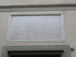 En la parte superior de la entrada al edificio conocido como palacio Lottini, también mencionado como Casa Barbetti, en Florencia, hay una placa conmemorativa en la que se lee:[12]
