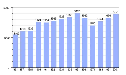 Gráfica de evolución demográfica de Giove entre 1861 y 2001