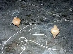 La peonza o trompo es seguramente el elemento cultural más viejo y sencillo que ilustra de forma clara el efecto giroscópico en funcionamiento. En sus diversas formas se conoce desde muy antiguo, con restos y referencias pictóricas o epigráficas que datan al menos desde el primer milenio a. C. en Mesopotamia, aunque seguramente sea muy anterior. Hay evidencias de su uso temprano en la Antigua Roma, en Grecia, China, India y muchos otros lugares. Permanece en esencia un juguete inalterado, variando ligeramente la forma, los materiales (arcilla, madera, plástico, metal, etc.) y la decoración. Por supuesto, conocer empíricamente su funcionamiento, el hecho de que al girar se mantiene en pie, no implica que se conociesen las causas del fenómeno, ni poder calcular la magnitud y los factores que influyen en el efecto, con lo que las aplicaciones más potentes no fueron evidentes hasta mucho más tarde, concluida la revolución científica y hacia el final de la Revolución Industrial.