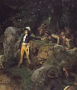 - ↑ Oficial de artillería y comandante del ejército realista en Anjou[26] capturado en Ernée[27] por el Ejército del Oeste. Interrogatorio fechado en Ernée, 27-28 de diciembre de 1793.[28] En Thorigny pagó un soborno para que lo dejaran escapar y así evitar un tribunal revolucionario y una segura condena a muerte.[27]