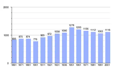 | Gráfica de evolución demográfica de Giungano entre 1861 y 2001 |