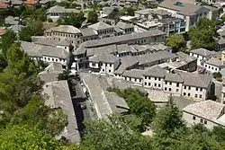 Gjirokastra es también conocida como la "Ciudad de las piedras", ya que la mayor parte de los tejados de las casas antiguas están cubiertas de piedras, un rasgo distintivo de la arquitectura local. Gjirokastra es una de las ciudades en las que mejor se ha conservado la arquitectura típica de los Balcanes, de influencia otomana. Otros ejemplos destacados de esta arquitectura son la ciudad macedonia de Ohrid o Berat, en la Albania central.